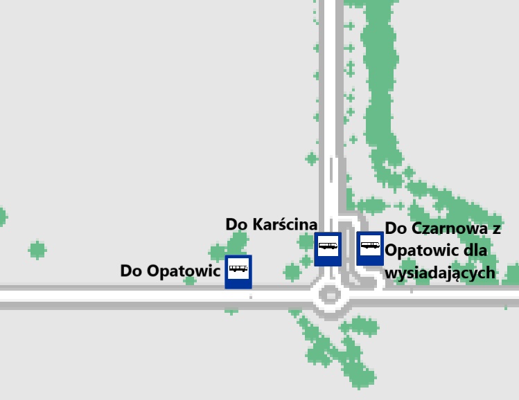 - Przystanki obsługiwane dodatkowo do Opatowic: Karścino -> Czarnowo Dębowa -> Czarnowo -> ...
